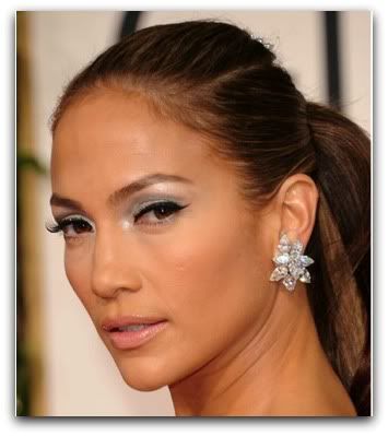 How-to: First apply a “primer” to eyelids (such as Make Up For Ever Eye Seal). Then apply eyeliner style of choice (I love the liquid liner cat-eye look, as seen in the photo). Next apply a darker silver shadow to the main area of your lids. Then apply a lighter silver shade over the darker shade (to create that “bright” silver shimmer look). Also apply the lighter silver color just below the brows and also dust a bit of the lighter silver color on inner corners of eyes (this will make eyes “pop”). Finish by applying mascara. (Tip: since the silver eye makeup will be the main star, wear a nude peach or pink lip color.)