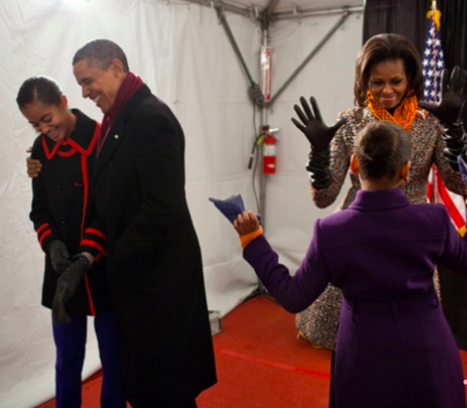 If you compare this picture to the Obamas’ first inauguration image, you’ll be shocked by how much the girls have grown up in just four years. With Malia’s statuesque look, wavy hair and brace-free look, she’s blossomed into an absolute stunner. Meanwhile, we can see Sasha expressing herself through her personal style and growing into her own identity. We’ve come a long way, baby!