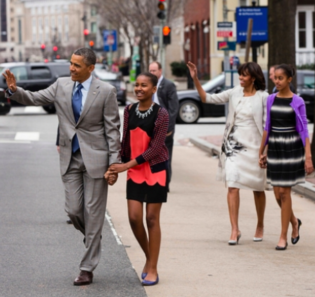 While many kids would be mortified to hold hands with their dads as teenagers, it’s clear that these two aren’t at all embarrassed of their very accomplished parents. On the way to an Easter service at church in 2013, Sasha holds her dad’s hand and Malia holds her mom’s, and everybody’s all smiles!