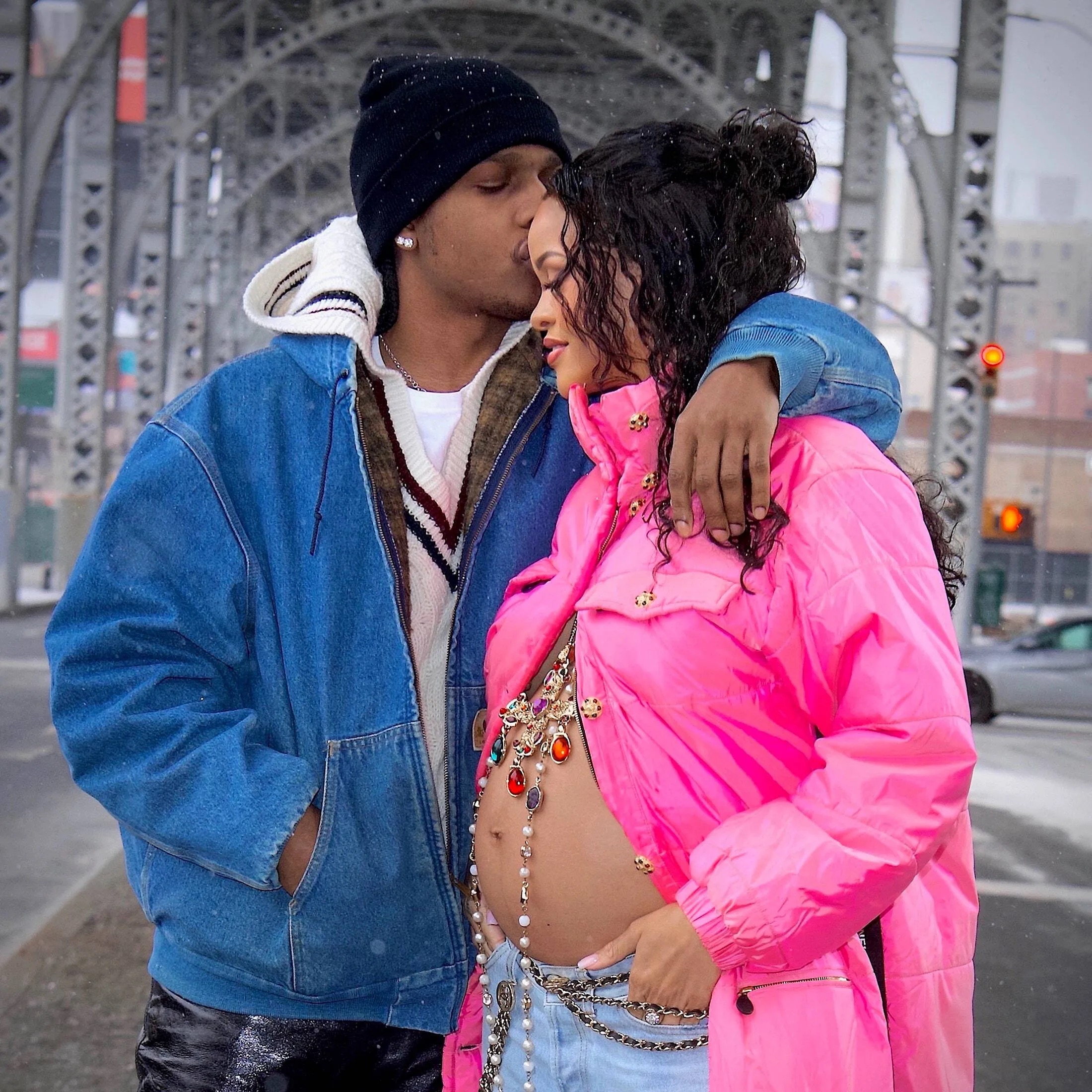 When she came out rocking the bump in a hot pink, Barbiecore puffer parka by Chanel, tons of jewels and ribbed boyfriend jeans, the world collectively fell in love. She had an effortless, radiant glow and truly committed to that NYC reveal outfit, even though it was snowing outside. And that was just the start — throughout the rest of her pregnancy, she wore some seriously jaw-dropping looks, like that sheer Dior lingerie get-up and a Gucci latex crop top.