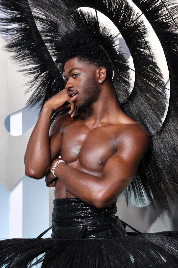 4. Lil Nas X peacocking in black feathers