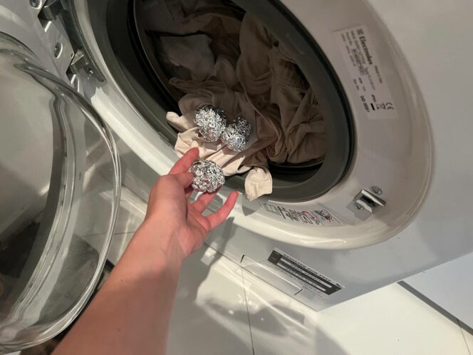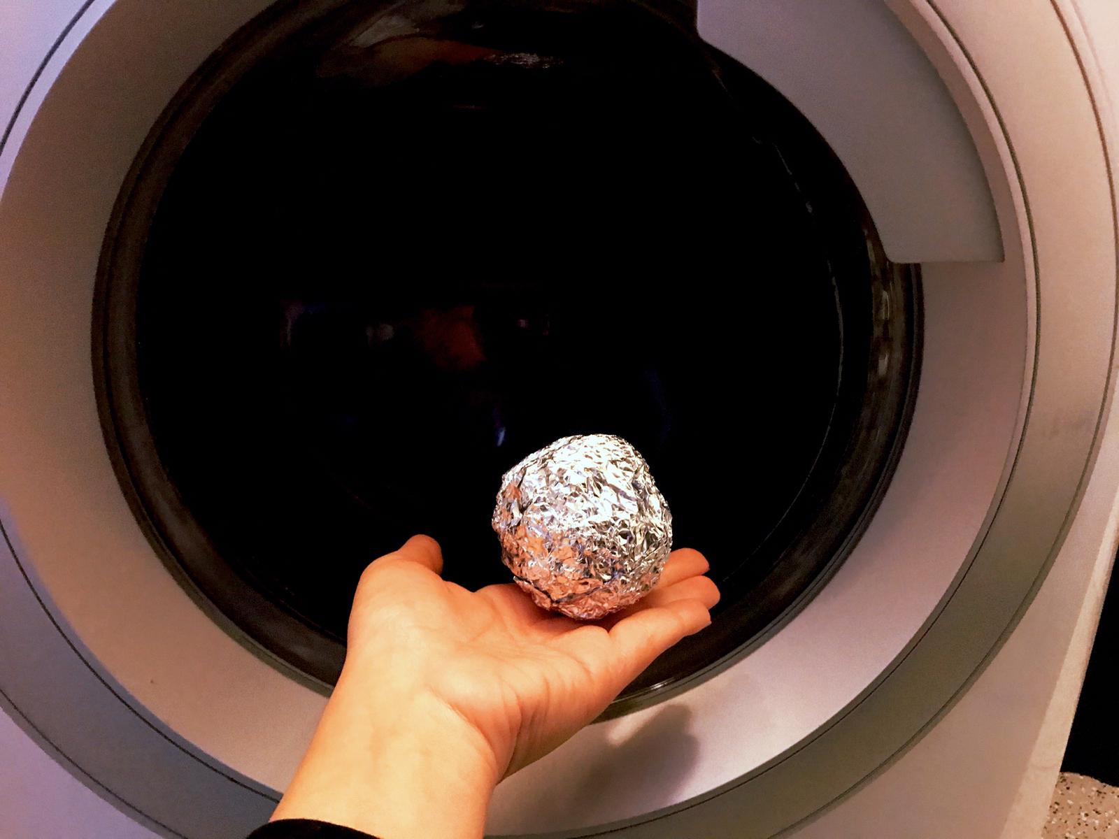 Bucato, palline di alluminio, carta stagnola, lavatrice