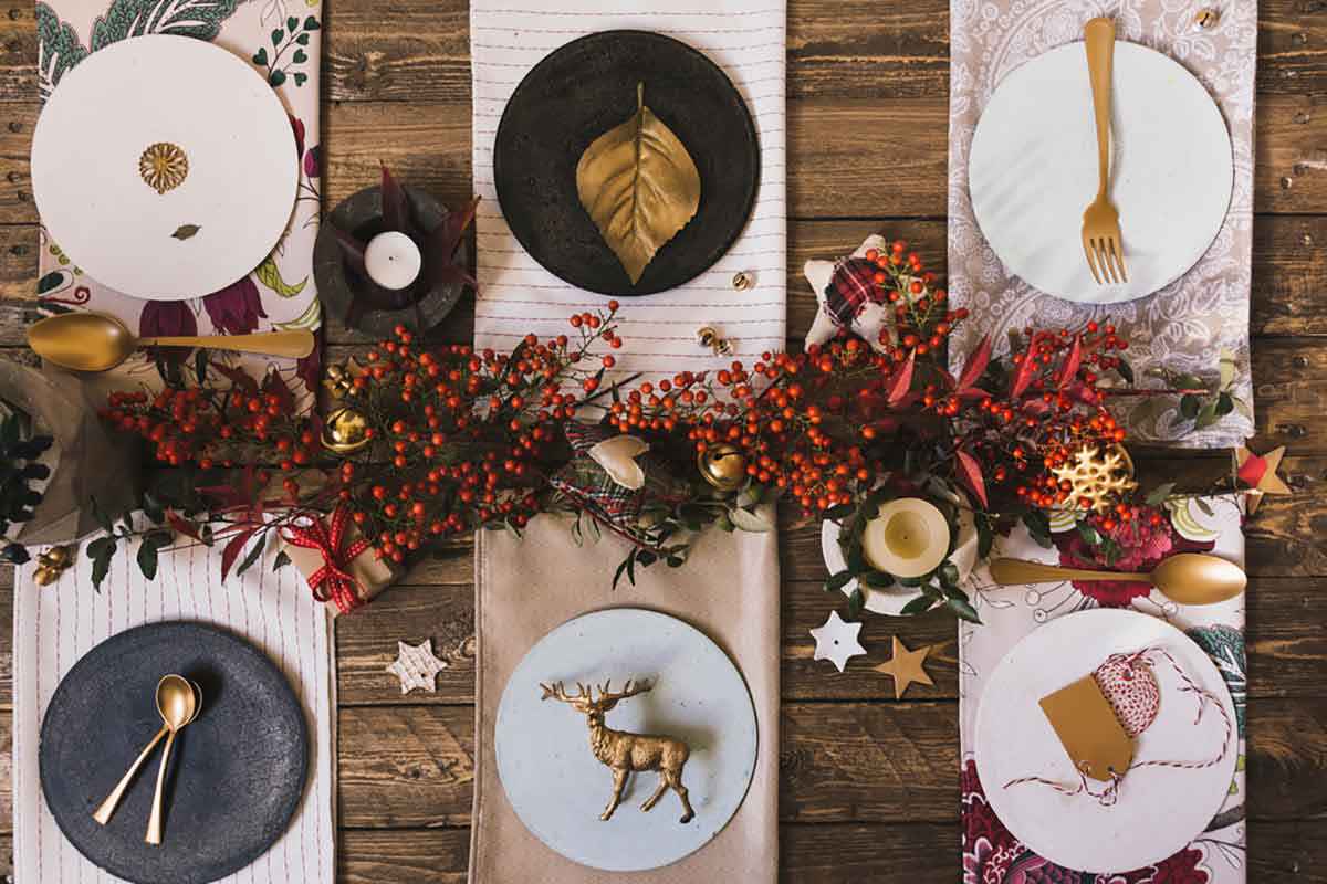 Forse mai come per questo Natale, le parole d’ordine sono: semplice ed essenziale. E ovviamente ciò non vuol dire brutto o fuori moda! In questi tempi in cui risparmiare è importante, riutilizzate con stile tutto quello che avete già in casa. Senza comprare altro! Tavole minimal: una tovaglia bianca con semplici decorazioni dai colori natalizi, verde pino o rosso vivo. Tovaglioli di carta colorata o un tulle sbrilluccicante che percorre tutto il tavolo. Divertitevi anche ad usare le stoviglie spaiate, runner colorati e semplici decorazioni naturali qua e là sulla tavola. Il risultato è garantito!