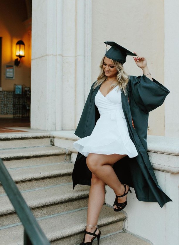 Também recentemente, Marina postou fotos de sua formatura do Ensino Médio, que completou nos EUA. A moça aparece com beca, capelo, um vestidinho curto e salto alto, bastante sorridente e parecendo orgulhosa pela conquista.