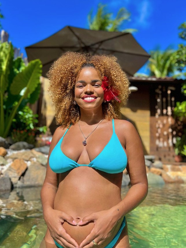 Neste mês de julho, a atriz e apresentadora Jeniffer Nascimento trouxe várias novidades para os seus seguidores nas redes sociais, exibindo a sua barriguinha de grávida de primeira viagem. Jeniffer está esperando o primeiro bebê com o marido, o ator Jean Amorim, e no dia 17 ela postou imagens em que aparece usando um biquíni fininho enquanto se refresca à beira de um lago artificial.