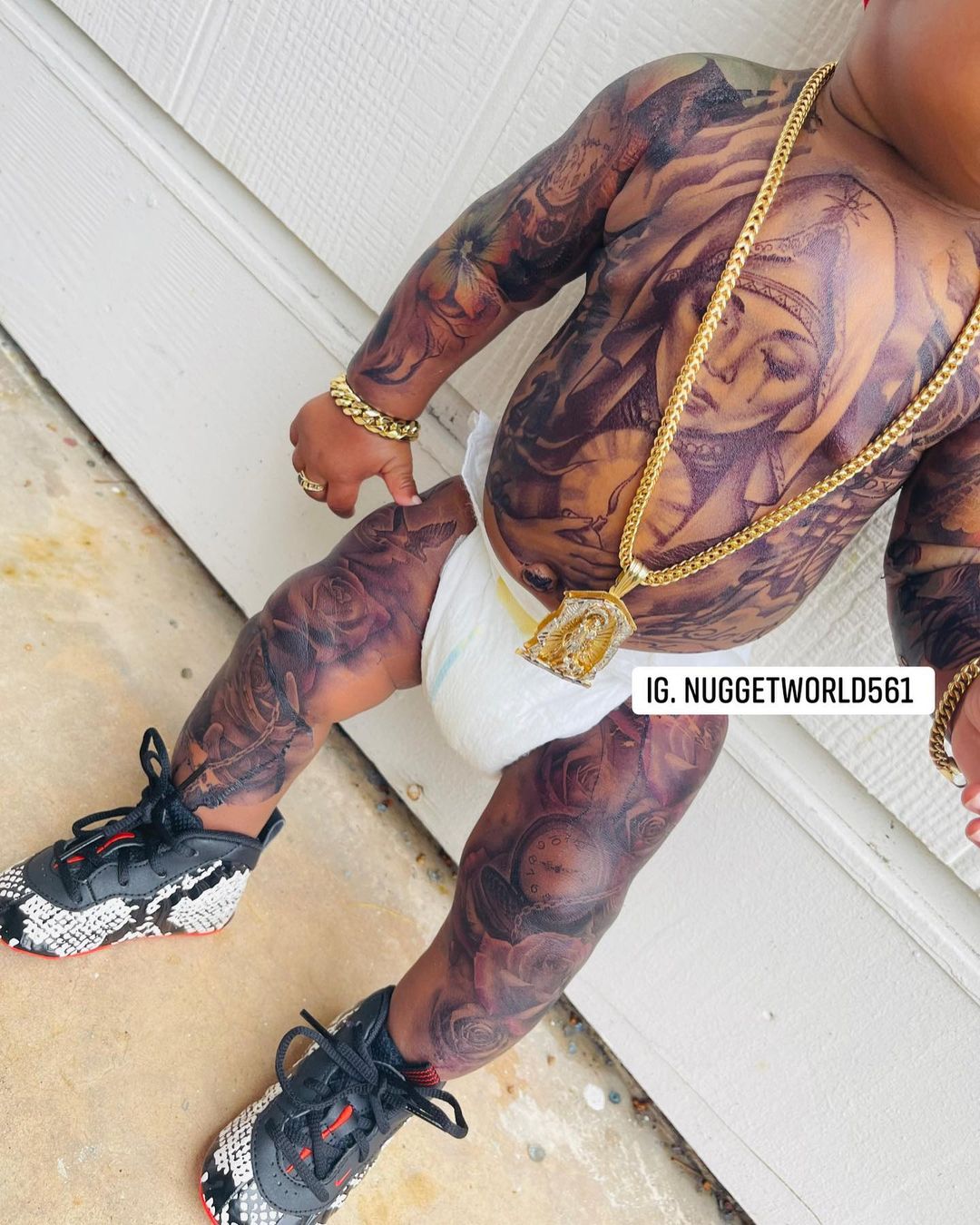 Фотографии малыша, покрытого татуировками, стали вирусными в социальных сетях. Интерес к мальчику также подогревало необычное поведение его матери. Шамекиа утверждала, что каждая татуировка, которую она делает сыну, предназначена для того, чтобы обозначить определенную веху в его жизни.