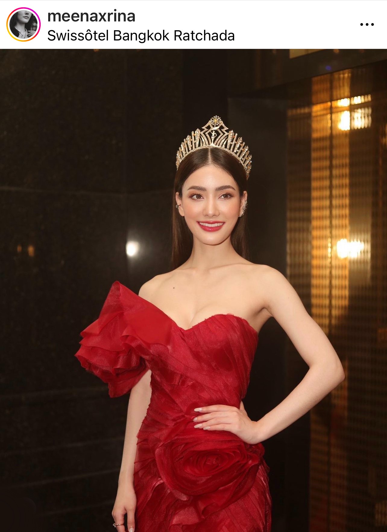 แต่บอกเลยว่าที่ชัดเจนที่สุดคือ ความสวยของสาวมีนา ที่ออร่ากระแทกตาแขกผู้มีเกียรติเป็นอย่างมาก จนพากันตามหาวาร์ปว่าเธอคือใครกันแน่ โดยสาวมีนาเป็นมิสแกรนด์นครราชสีมา 2023 ซึ่งปัจจุบันเธอมีอายุ 26 ปีแล้ว เกิดวันที่ 12 ตุลาคม 2540 เคยผ่านการประกวดต่าง ๆ มาแล้ว มีงานในวงการมากมายทั้งถ่ายโฆษณาและงานแสดง รวมไปถึงมีผลงานแสดงซีรีส์เรื่อง ส่งร้อนเสิร์ฟรัก Bite Me อีกด้วย ใครที่อยากกินเผือกร้อน ๆ หรือติดตามผลการประกวดมิสแกรนด์นครราชสีมาของมีนา ก็สามารถเข้าไปกดติดตามเธอที่ IG : meenaxrina ได้เลยนะคะ