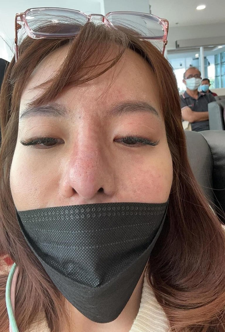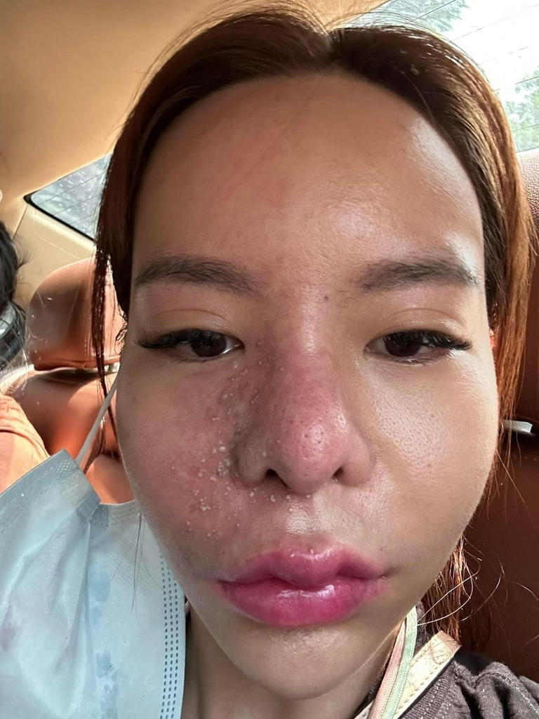 วันที่ 1 มีนาคม 2566: คุณมะลิไปฉีดฟิลเลอร์บริเวณร่องแก้มทั้งสองข้าง หลังฉีดเสร็จเวลาผ่านไปไม่ถึงชั่วโมง แก้มขวาเริ่มมีรอยช้ำและอาการแสบโพรงจมูกฝั่งขวามาก มีน้ำมูกไหลออกด้วย
