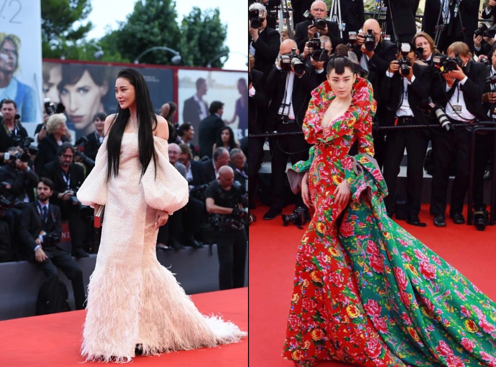 Năm 2015, khi được dịp xuất hiện trước công chúng toàn cầu tại LHP Cannes, mỹ nhân họ Trương bị cho là bắt chước ý tưởng của Phạm Băng Băng khi diện một thiết kế với hoạ tiết phượng và hoa mẫu đơn cầu kỳ mang sắc màu dân tộc. Tuy nhiên, thay vì được ca tụng như “đàn chị”, người đẹp thị phi lại vấp phải sự chê cười và mẫu trang phục mà cô chưng diện lại được ví von như “vỏ chăn”. Cũng trong năm đó, khi xuất hiện tại LHP Venice, nữ diễn viên thủ vai “Lý Mạc Sầu” dù ăn điểm với trang phục thanh thoát, gợi cảm nhưng lại vấp phải loạt chê bai vì mái tóc bết dầu cùng đôi mắt sưng húp kém sắc của mình.